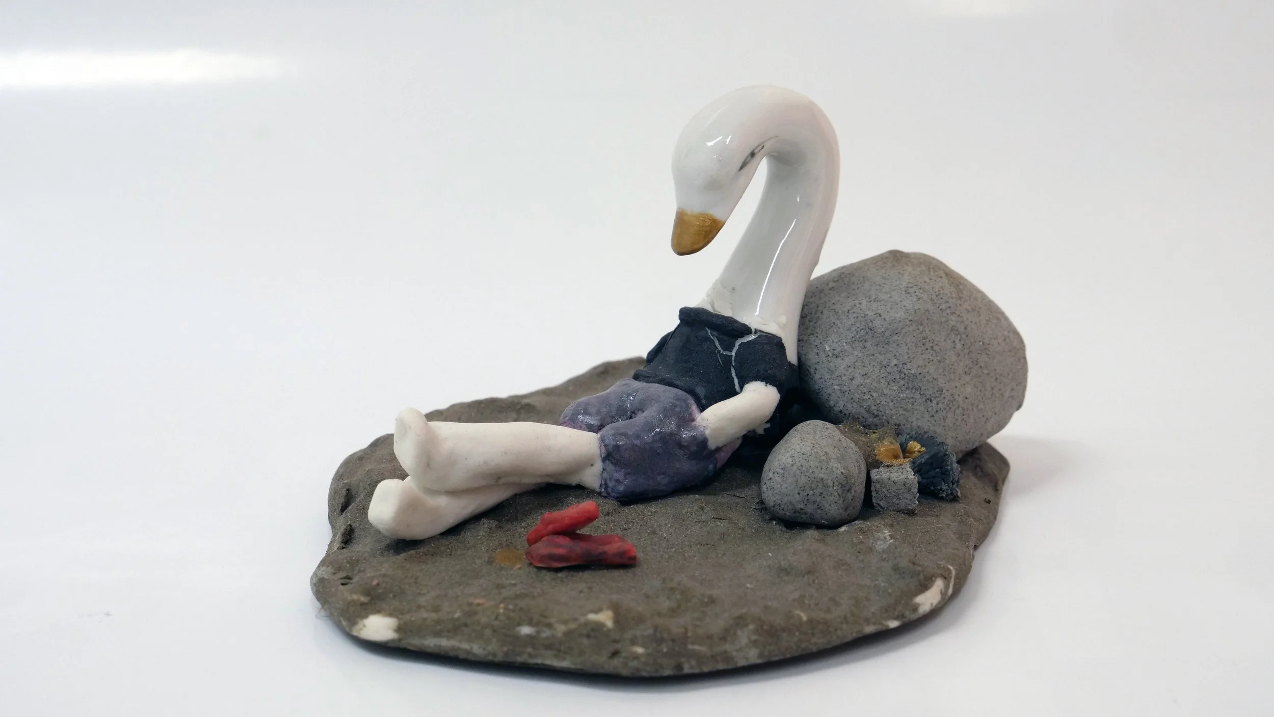 2023 /restored found swan bowls, handbuilt stoneware, glaze, pigment/